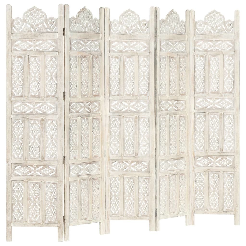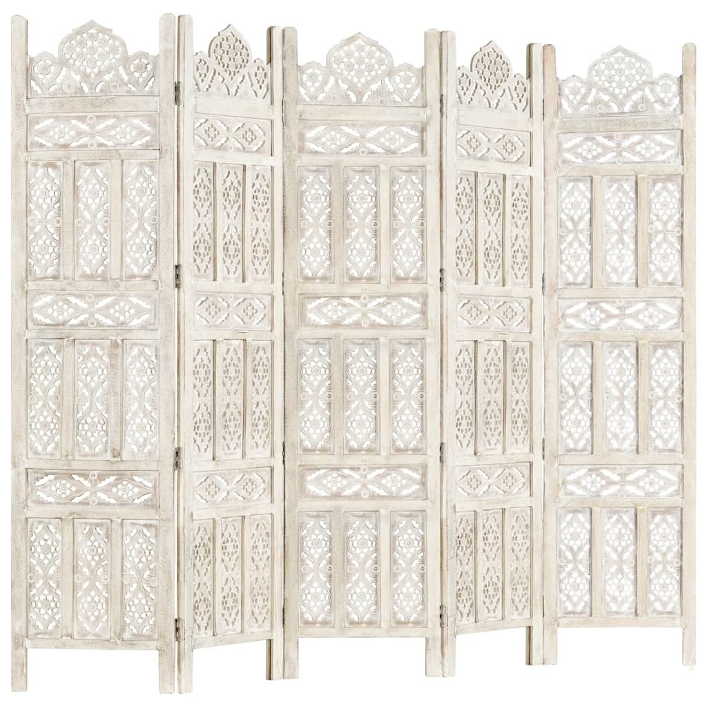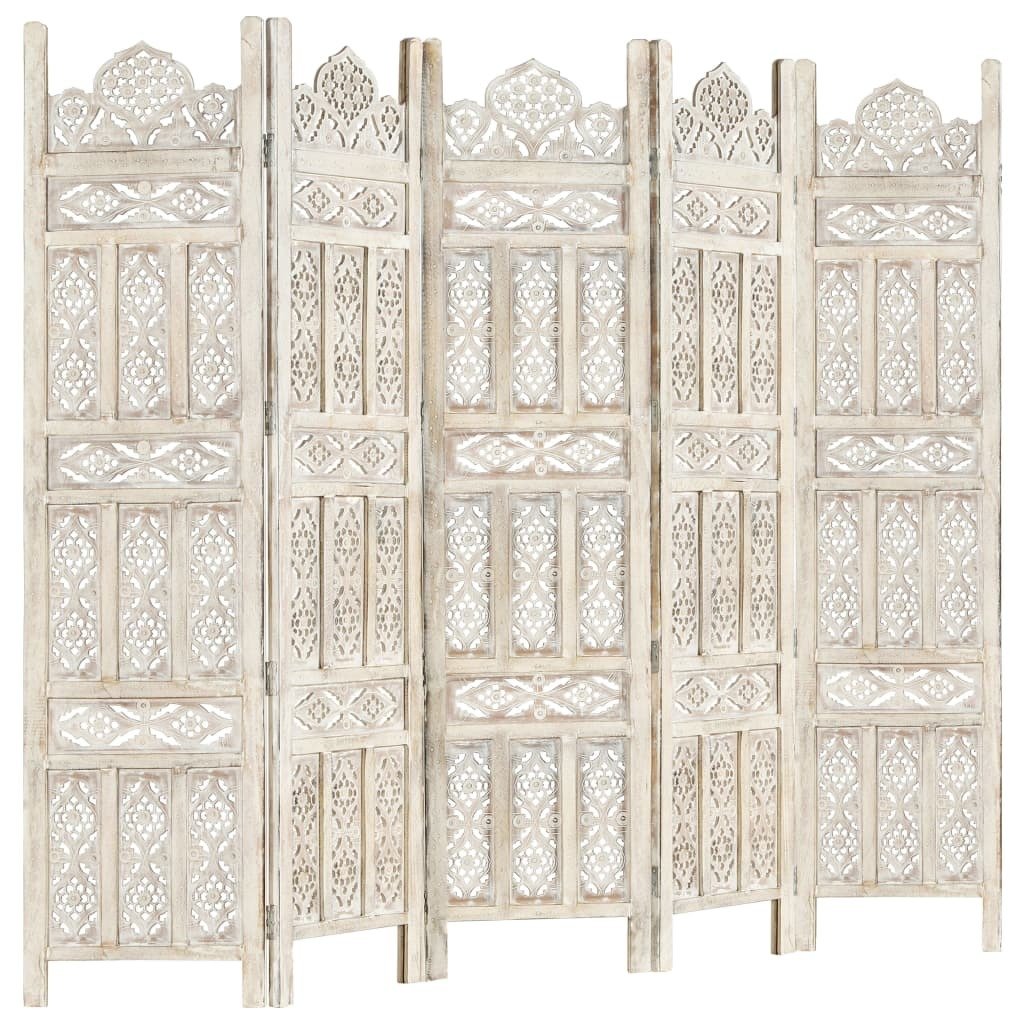 Home > Hand carved 5-Panel Room Divider White 78.7"x65" Solid Mango Wood