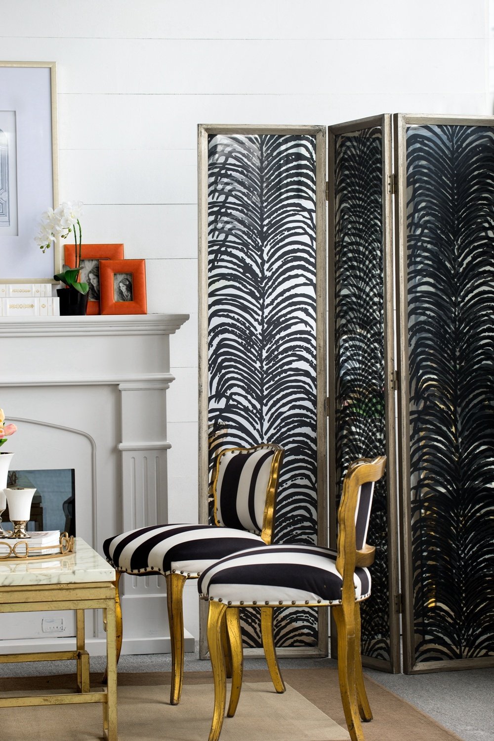 The DesignFeaturing a bold pattern and classic design, the Herero Four-Panel Decorative Screen takes a traditional item and transforms it into a striking, slightly exotic piece. Let this screen add privacy in a small space or create divisions within a large, open concept home. With its metal frame and folding design, the Herero Decorative Screen offers durability and folds for easy storage.