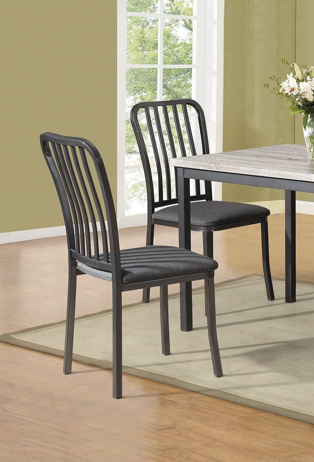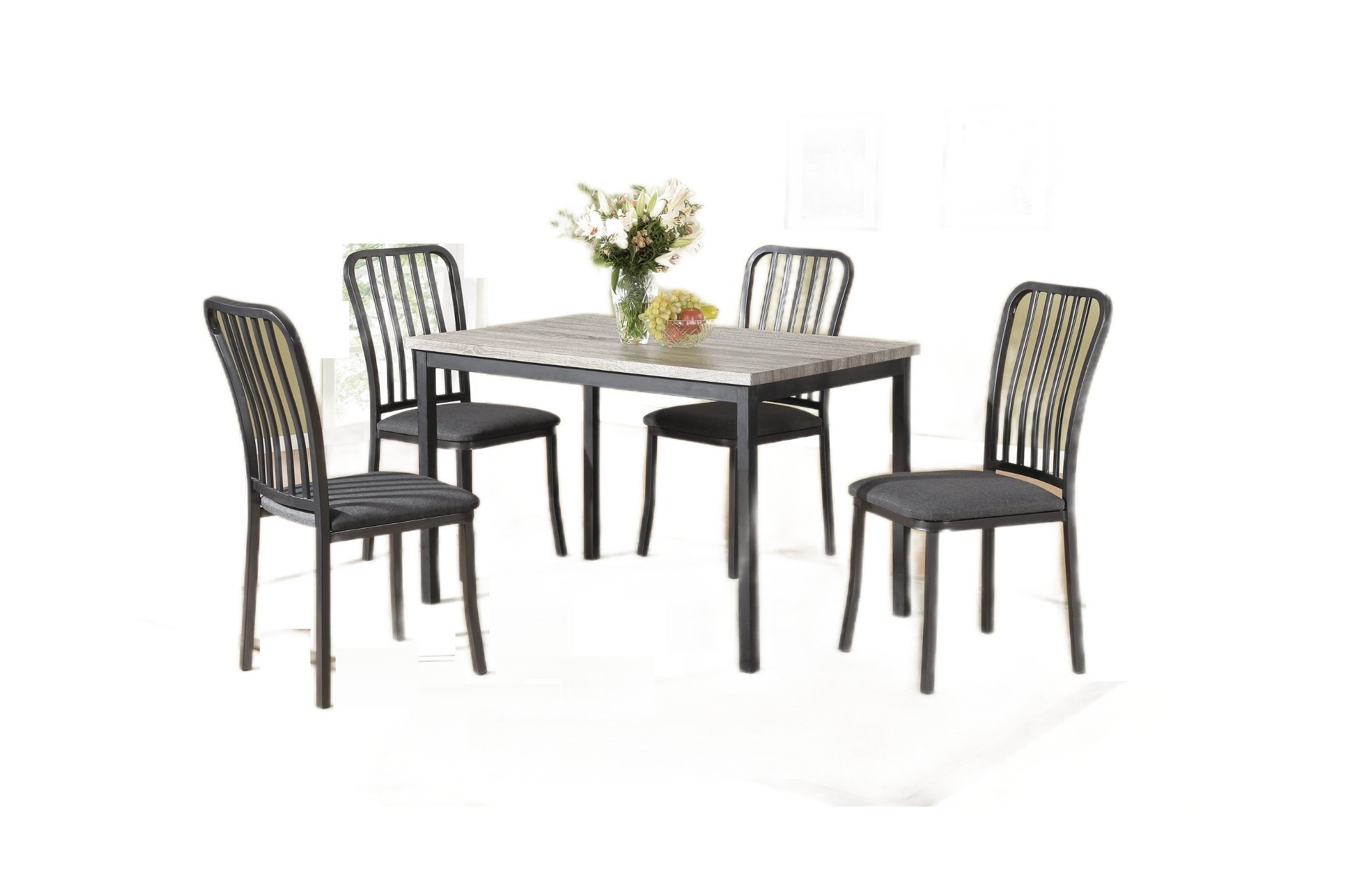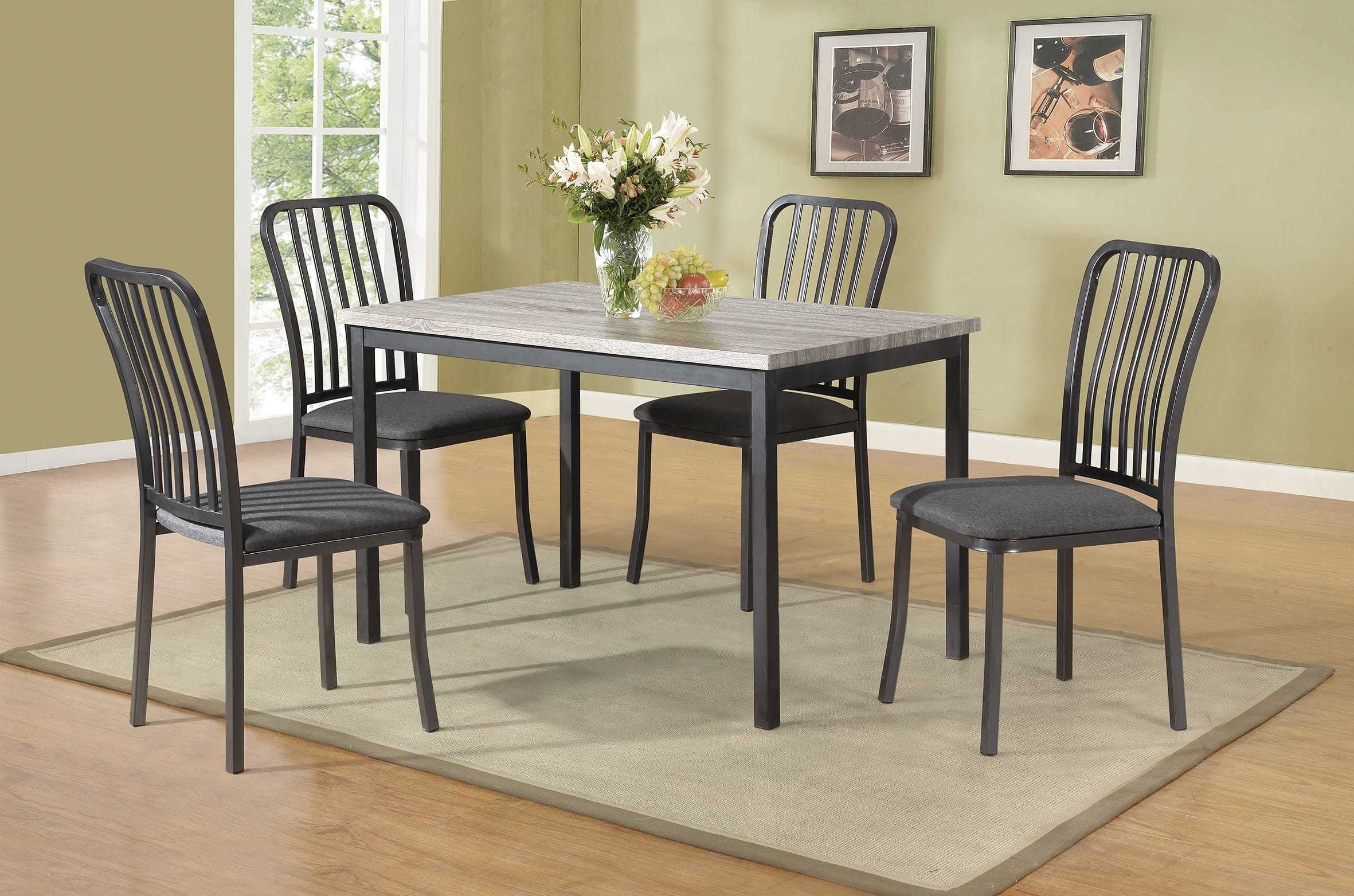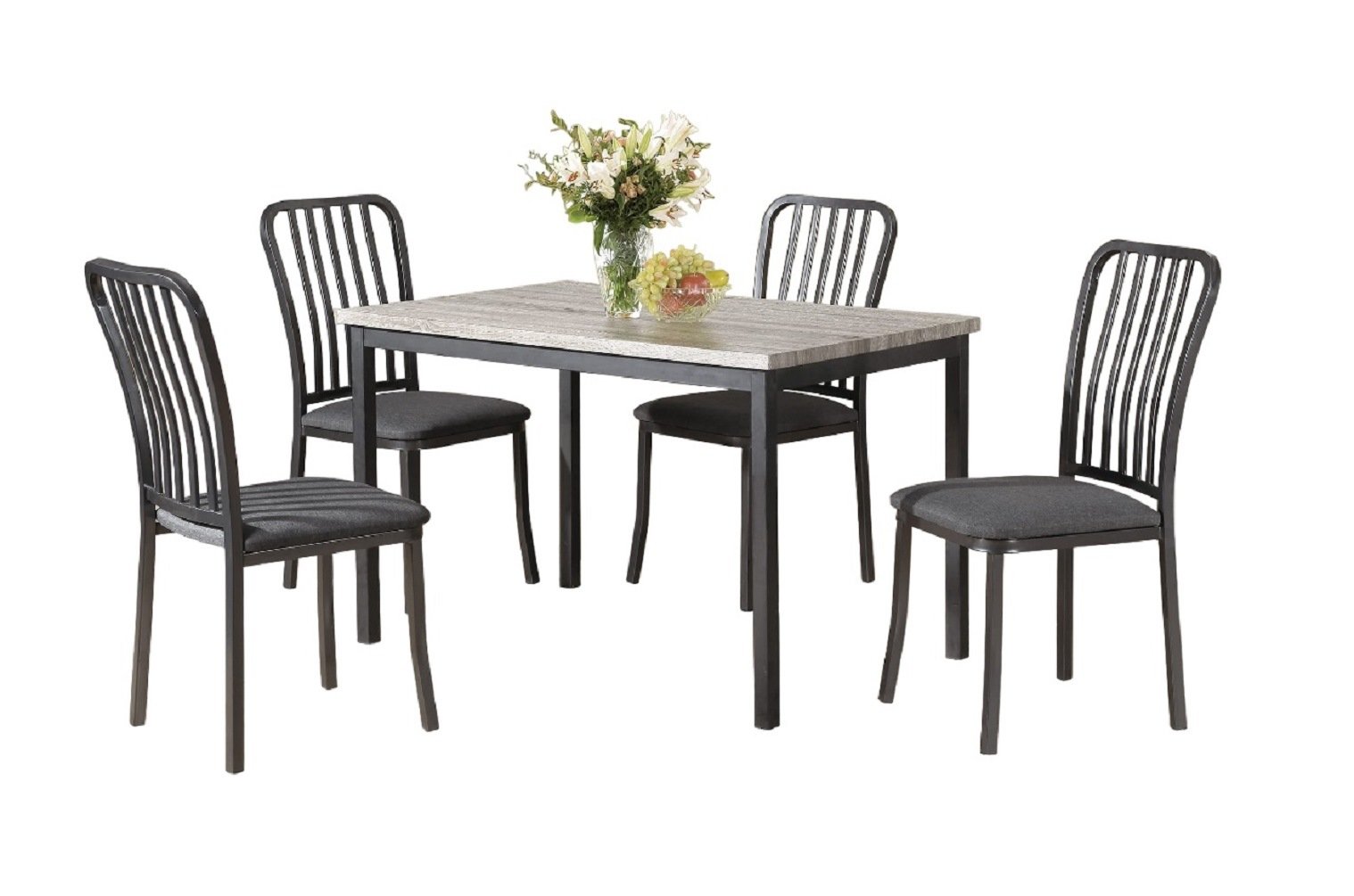 Product DescriptionProduct Description:-Light up for home dining space with a 5-piece dining set that works both in a classic or modern setting. It features a faux marble tabletop and gray fabric upholstered chairs, comfortably seating four.Product Dimensions:-Dining Table: 48" x 30" x 30"HSide Chair: 18" x 22" x 38"HListing Includes :- Dining Table And 4x Side Chairs Only.Simple assembly require.Product Features:-•Contemporary Style•Grey Fabric Upholstered•Cushioned Seats•Faux Marble•Metal Frame Base•MDF w/ Paper veneer•FR foam