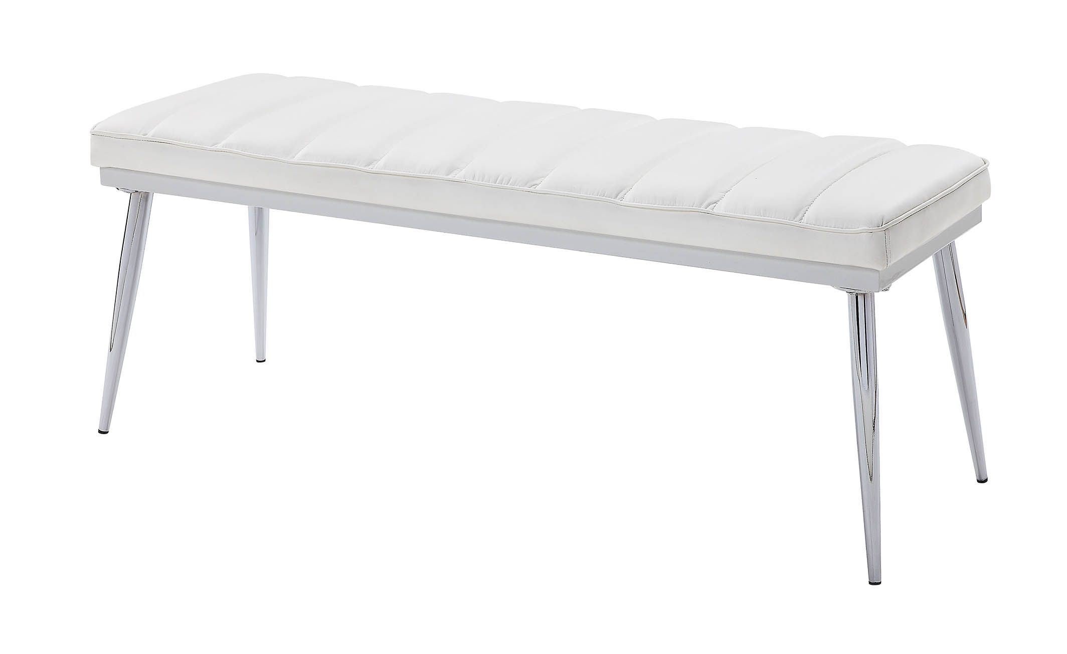 Romance : Add a dash of contemporary style and a comfy seating to your home with this Weizor Bench. Its stainless spindle leg boasts a polished chrome finish that lends an urban appeal. The white faux leather cushioning on top is upholstered in channel tufted with welt trim adds a tailored look.