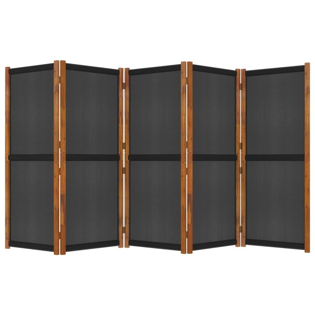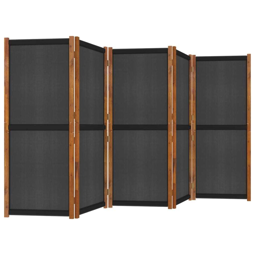 Premium material: Solid acacia wood is a beautiful natural material. Acacia wood is a tropical hardwood, which is dense, sturdy, and durable. The strong textilene is also weather-resistant and easy to clean.Foldable design: This panel screen can also be easily folded away to save space when not in use.Multiple functions: This room privacy screen can be used as a decoration as well as a partition. It's perfect for separating an area for privacy or creating an extra room.Color: BlackMaterial: Solid acacia wood with an oil finish, textileneOverall size: 137.8" x 70.9" (W x H)Size of each panel: 27.6" x 70.9" (W x H)Wooden frame thickness: 1"Suitable for indoor and outdoor useAssembly required: YesCalifornia Proposition 65