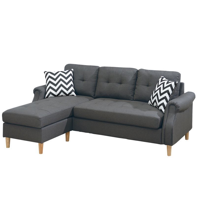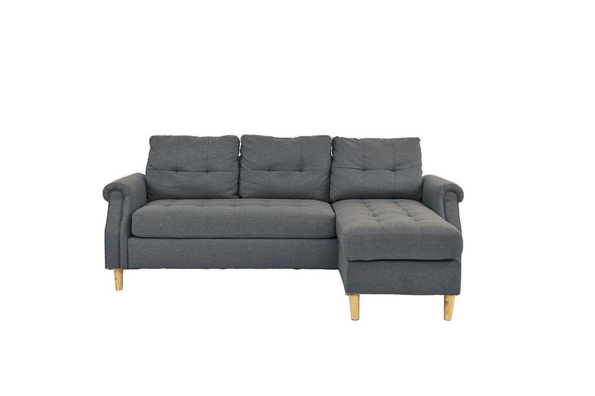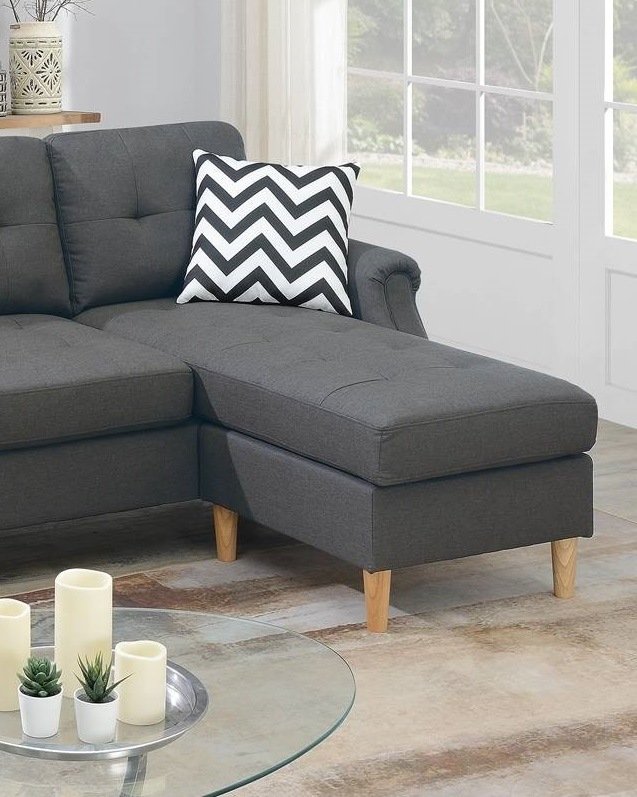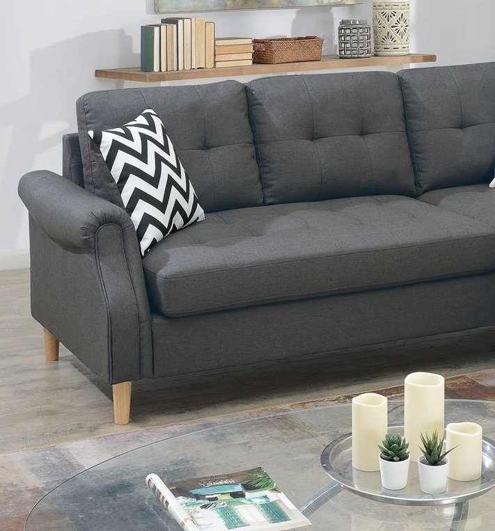 This small space Sofa Sectional with Reversible Chaise lounge is perfect for your living room. The Reversible Chaise can be arranged, to either the left or right side, so it easily customizes to your space. With its tufted back, seat cushions, and rolled curved armrest, this sectional achieves a clean and simple, silhouette making it perfect to work well with any home décor. Upholstered with Linen-like Fabric, this set is available in Dark Coffee, Light Coffee, and Blue Grey.