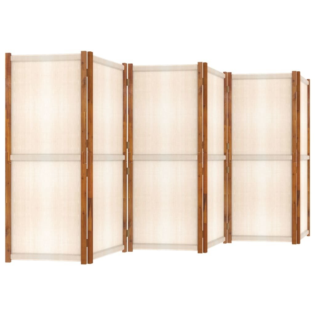Premium material: Solid acacia wood is a beautiful natural material. Acacia wood is a tropical hardwood, which is dense, sturdy, and durable. The strong textilene is also weather-resistant and easy to clean.Foldable design: This panel screen can also be easily folded away to save space when not in use.Multiple functions: This room privacy screen can be used as a decoration as well as a partition. It's perfect for separating an area for privacy or creating an extra room.Color: Cream whiteMaterial: Solid acacia wood with an oil finish, textileneOverall size: 165.4" x 70.9" (W x H)Size of each panel: 27.6" x 70.9" (W x H)Wooden frame thickness: 1"Suitable for indoor and outdoor useAssembly required: YesCalifornia Proposition 65