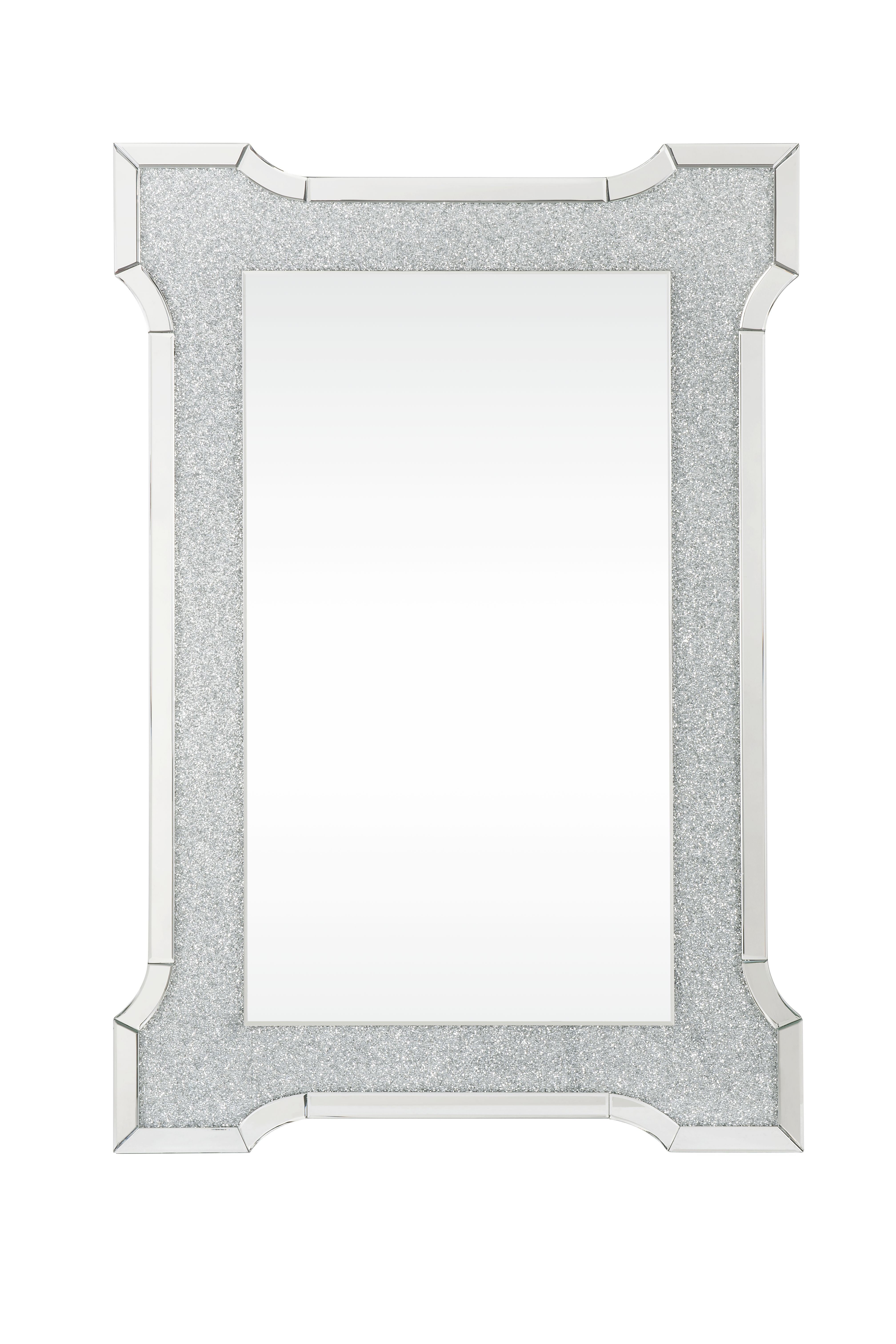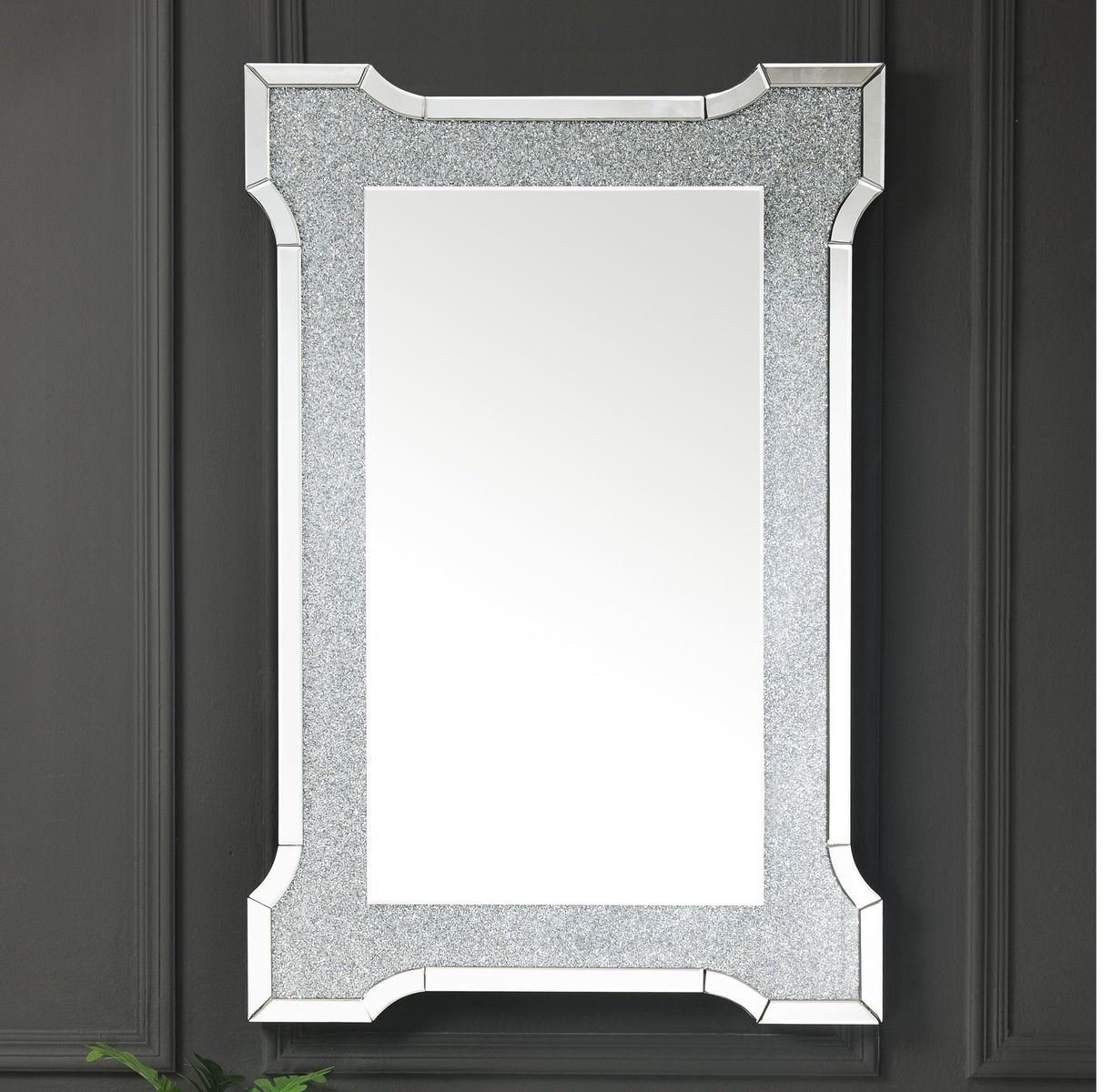 Romance : The Nowles mirror offers function and style to any modern setting. This rectangular wall mirror features beveled mirrored border trim with faux diamonds inlay that glimmer and glitter in the available light. Its frame crafted from durable engineered wood. The perfect complement for any glam style that naturally attracts the eye.