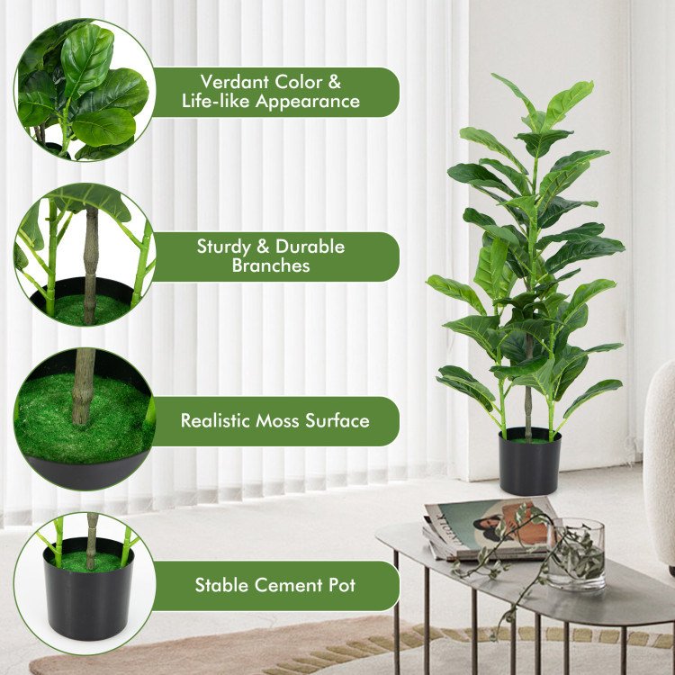 1.Vivid and Full Appearance: This artificial plant is made to imitate the texture and details of real fiddle leaves,and is designed with 40 leaves,helping create a full and vivid appearance. Moreover,the fake moss on the surface of the pot gives the whole plant a more realistic feel.