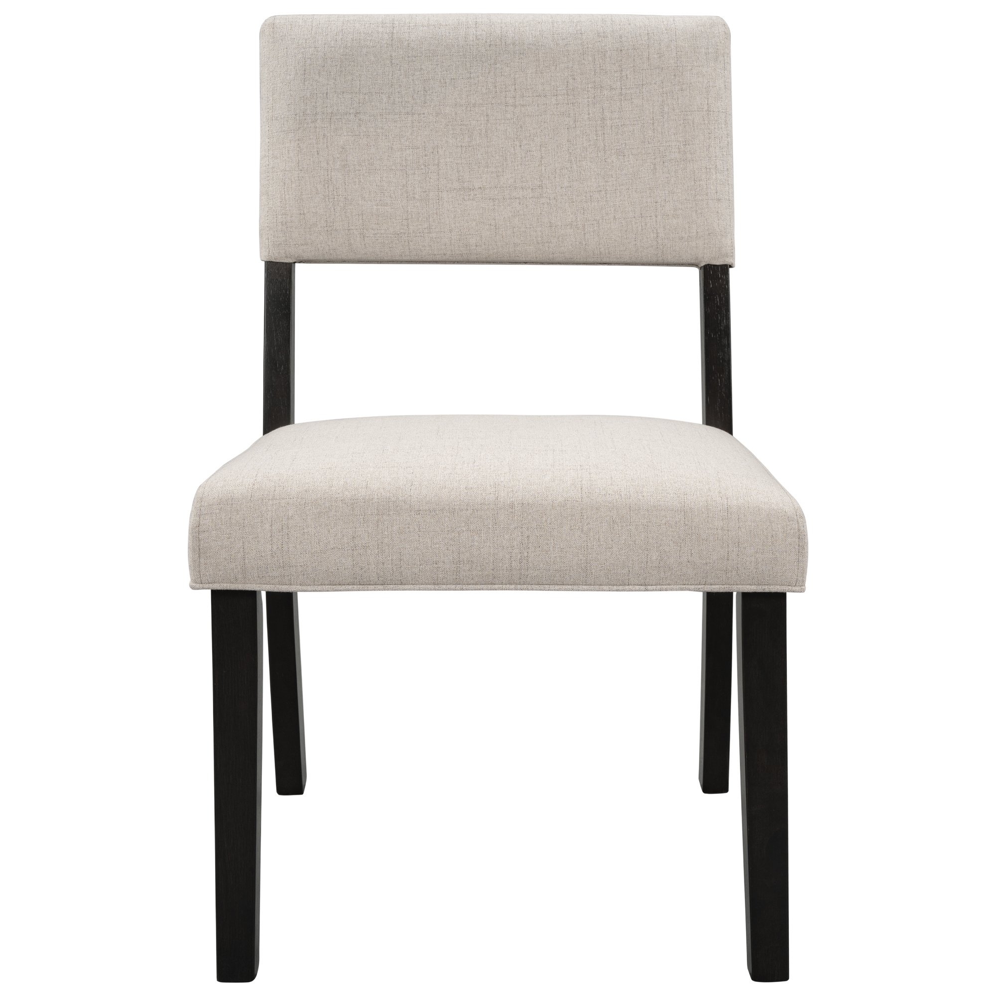 Contemporary Style: This simplistic modern dining set designed with a sleek silhouette and finished in a warm espresso lacquer. Accent wood grain detailing and beige fabric seating tie this set together perfectly, being capable of creating a contemporary look in your kitchen area.