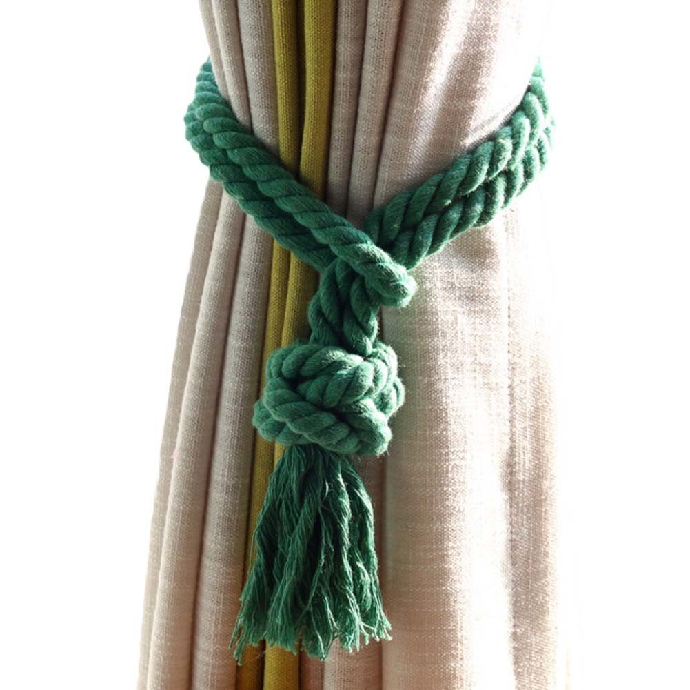 2 Pcs Curtain Tiebacks Handmade Cotton Rope Round Knot Drapery Tie Backs for Window Sheer Blackout Panels, Green 2 Pcs Curtain Tiebacks Handmade Cotton Rope Round Knot Drapery Tie Backs for Window Sheer Blackout Panels, Green