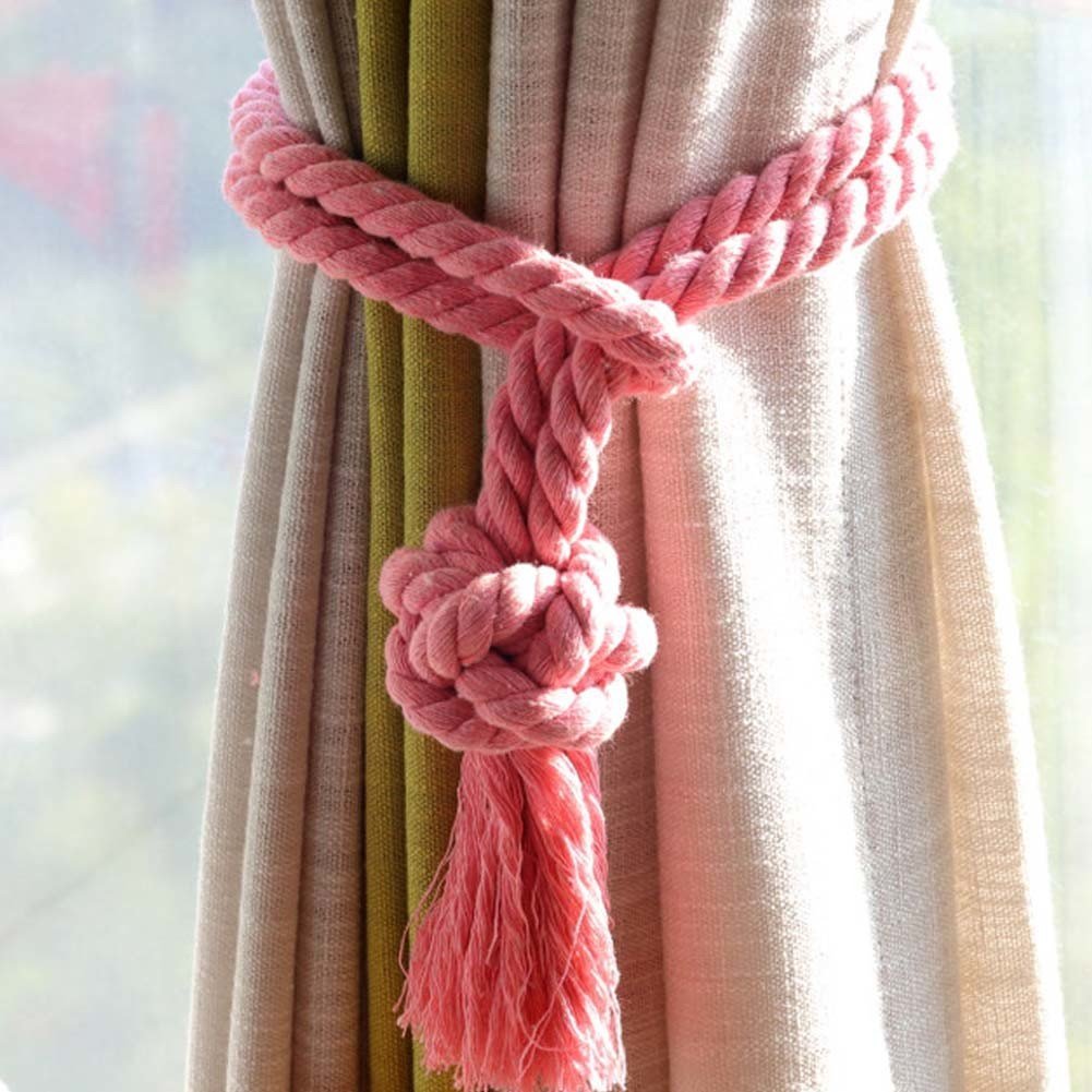 Home > 2Pcs Handmade Cotton Rope Curtain Holder Tie Backs Tassel Drapes Ball Tiebacks for Window Sheer Blackout Panels, Pink