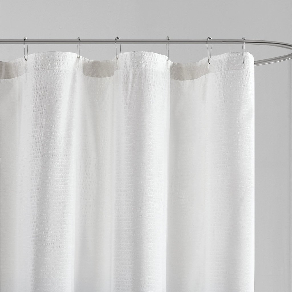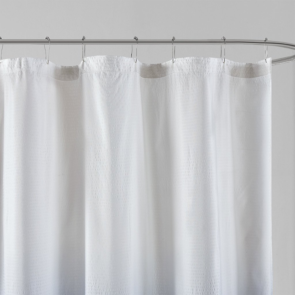 DescriptionAdd a refreshing touch to your bathroom decor with our Madison Park Ara Ombre Printed Seersucker Shower Curtain. This shower curtain features a blue ombre print on an embossed seersucker fabric, for a contemporary look that's rich in texture. The lightest color of the ombre design starts at the top and gradients to a darker color towards the bottom for a naturally soothing look. Machine washable for easy care, this contemporary shower curtain measures 72"x72" and is easy to hang with the 12 button holes at the top. A water repellant liner is not included, and highly recommended for the utmost protection.Product Details72x72"1 Shower Curtain:72"W x 72"LMaterial100% Polyester
