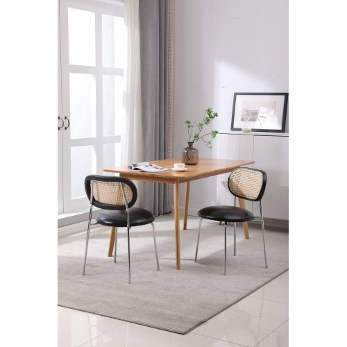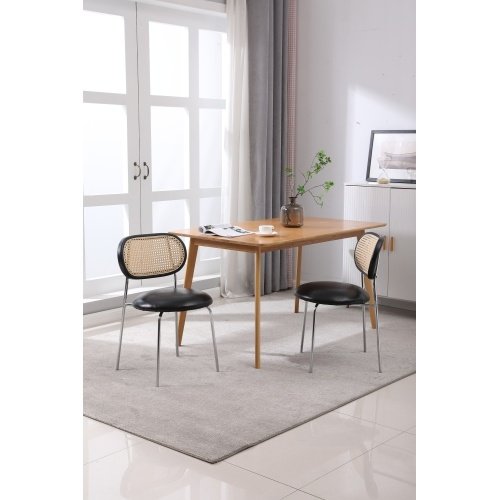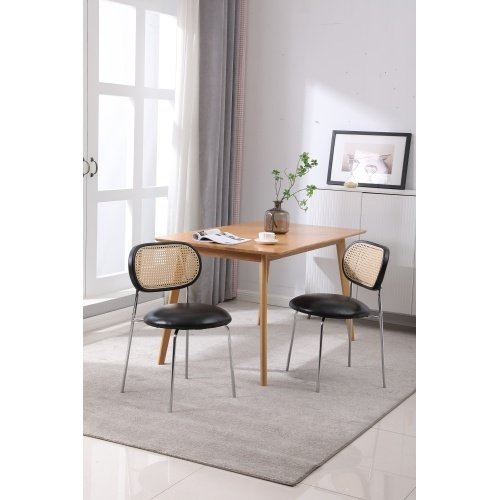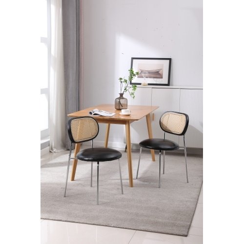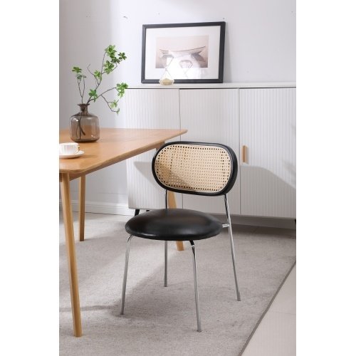 Dining Room Chairs, Modern Industrial Upholstered Chairs Mid Century Leisure Chair with Rattan Backrest for Kitchen Living Room Wine Bar (Set of 2)