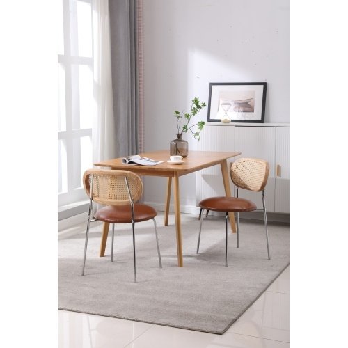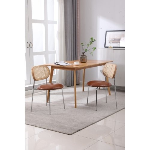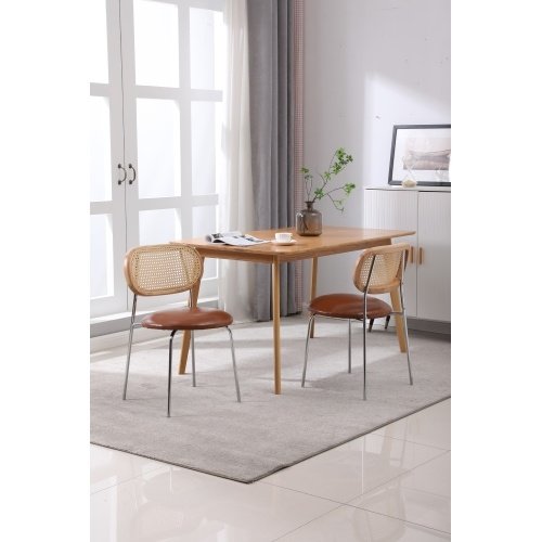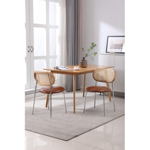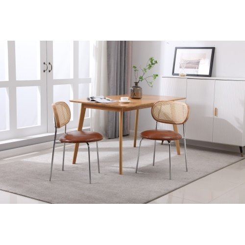 Dining Room Chairs, Modern Industrial Upholstered Chairs Mid Century Leisure Chair with Rattan Backrest for Kitchen Living Room Wine Bar (Set of 2)