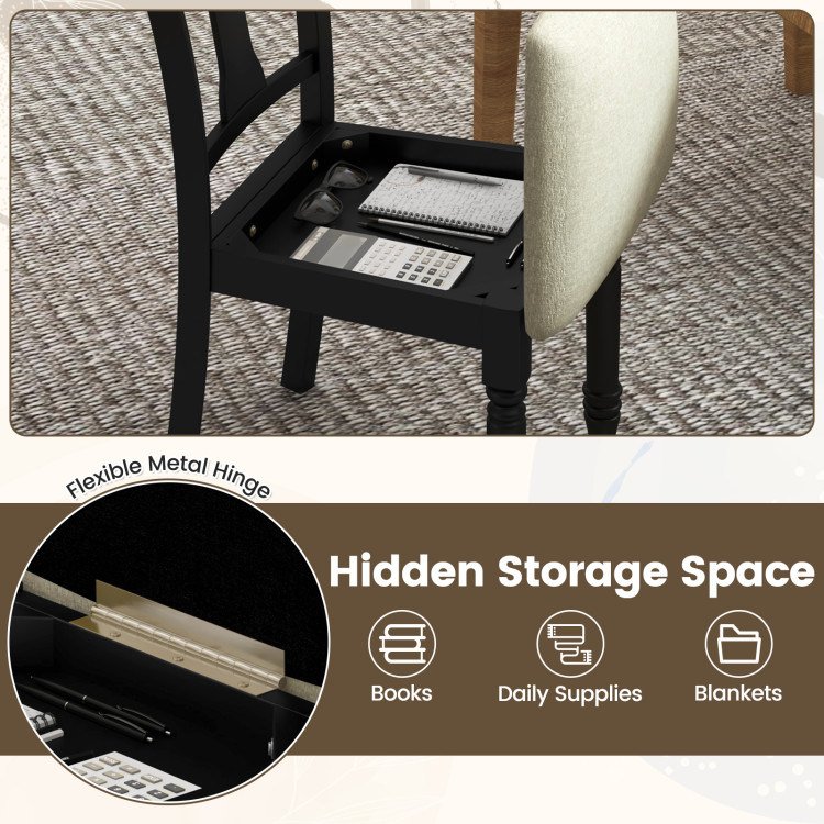 2.Creative Flip-up Design: With flip-up seat, the wood kitchen chair creates a storage space beneath the seat, allowing you to conveniently keep blankets, books, daily supplies or anything you want in place. Equipped with flexible hinge, you can effortlessly close and open the seat.