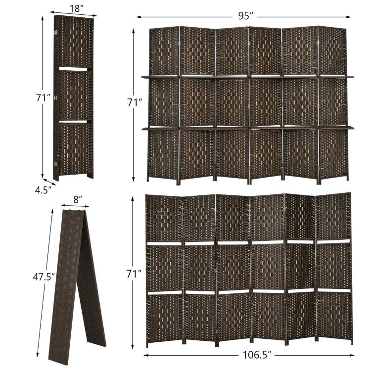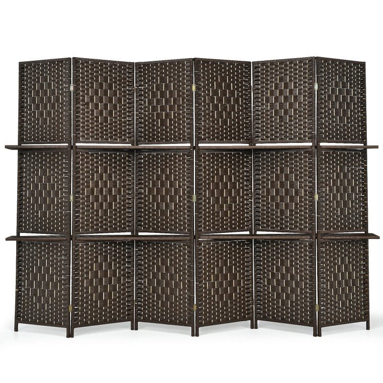6 Panel Folding Weave Fiber Room Divider with 2 Display Shelves